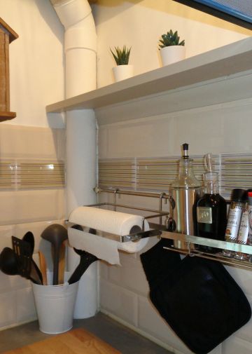 La cuisine est équipée d'un lave-vaisselle, d'une plaque 4 feux gaz, d'un four, d'une hotte, d'un micro-onde, d'une cafetière et d'une bouilloire électrique.